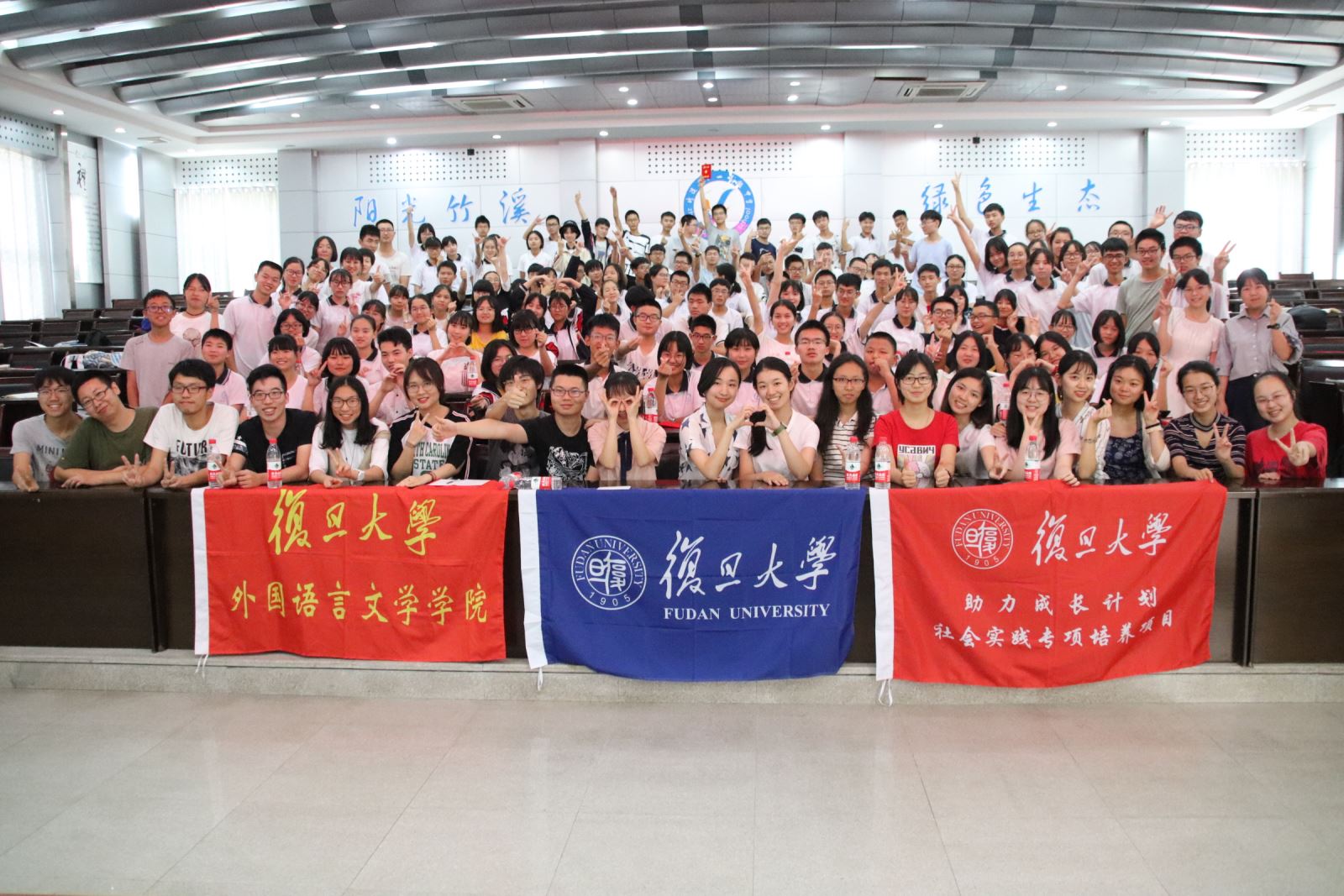 2018年7月24日至8月3日,在竹溪县委县政府的大力支持下,在万象城网页版,万象城(中国)“助力成长计划”社会实践专项的支持下,外文学院组织19名来自英文、俄文、德文、法文、日文等五个专业的本科生和硕士研究生,前往湖北省十堰市竹溪县学生实习基地和党员实践基地,举行第二期“携手复旦 激情英语”夏令营活动,外文学院副院长高永伟教授作为指导老师参加了支教活动,来自竹溪一中的140余名高中生参加了夏令营。