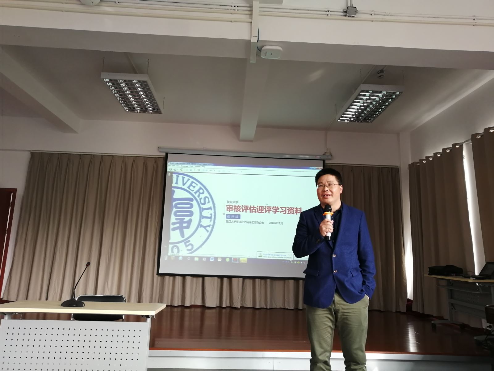 2018年11月20日,外文学院在工会204报告厅举行全院教师大会,推进本科教学审核评估迎评工作。会议由分党委书记罗英华主持。
